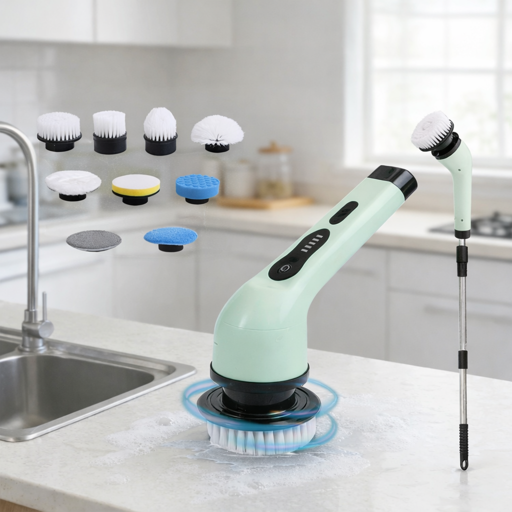 The AVERO SpinScrub removes tough dirt and grime in seconds β perfect for bathrooms, kitchens, and tiles. Cordless power. Multiple brush heads. Effortless results every time.